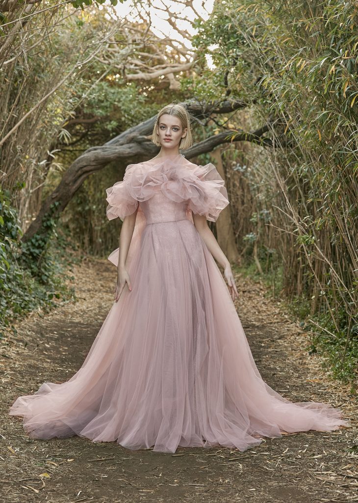 グリッタードレスにチュールをふんだんに重ねたくすみピンクのドレス*.。.