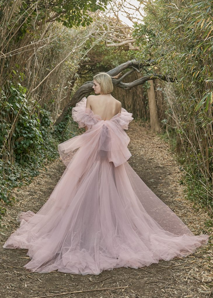 ピンクだけでなくグレーのチュールも重ね、可愛すぎない絶妙な色を表現しています。